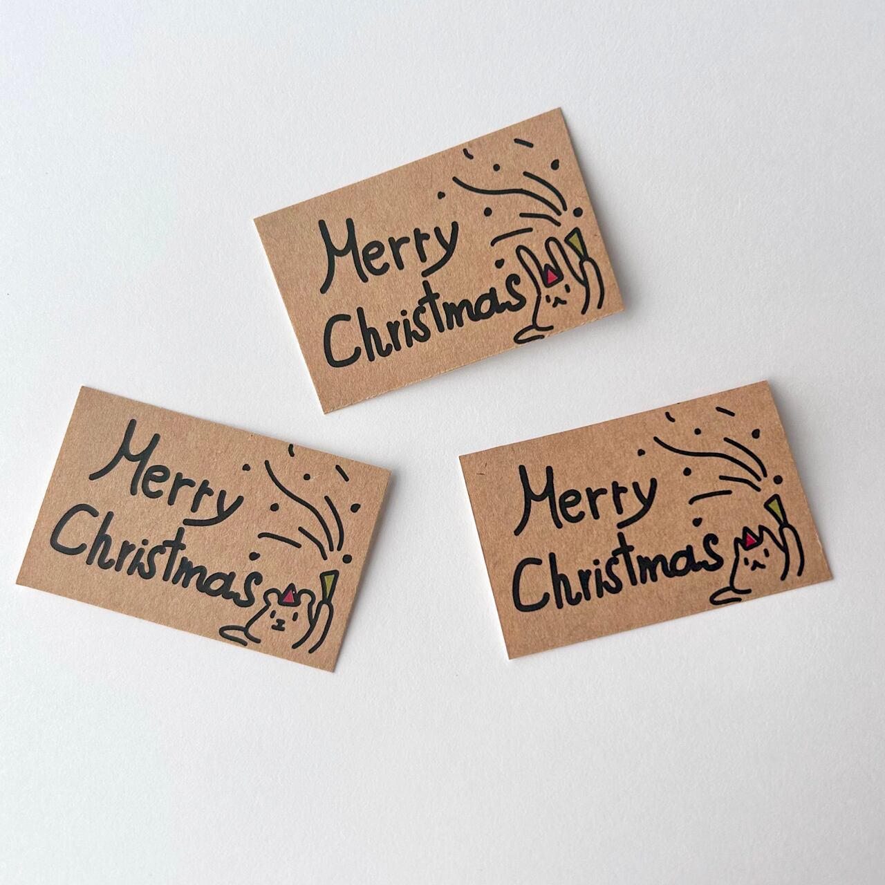 クラフト紙のクリスマスシールです。うさぎ、くま、ねこ柄が各1枚づつ入っています。