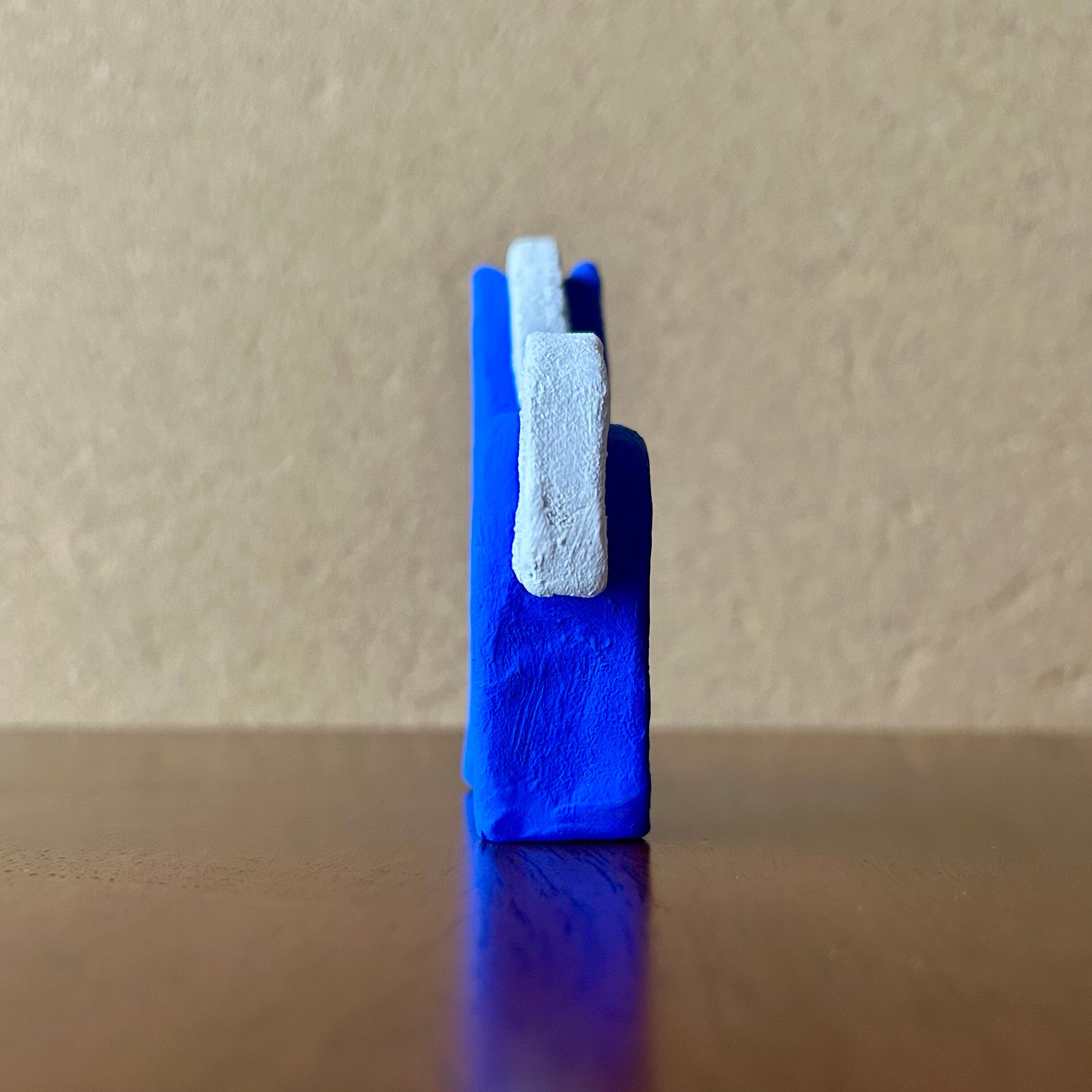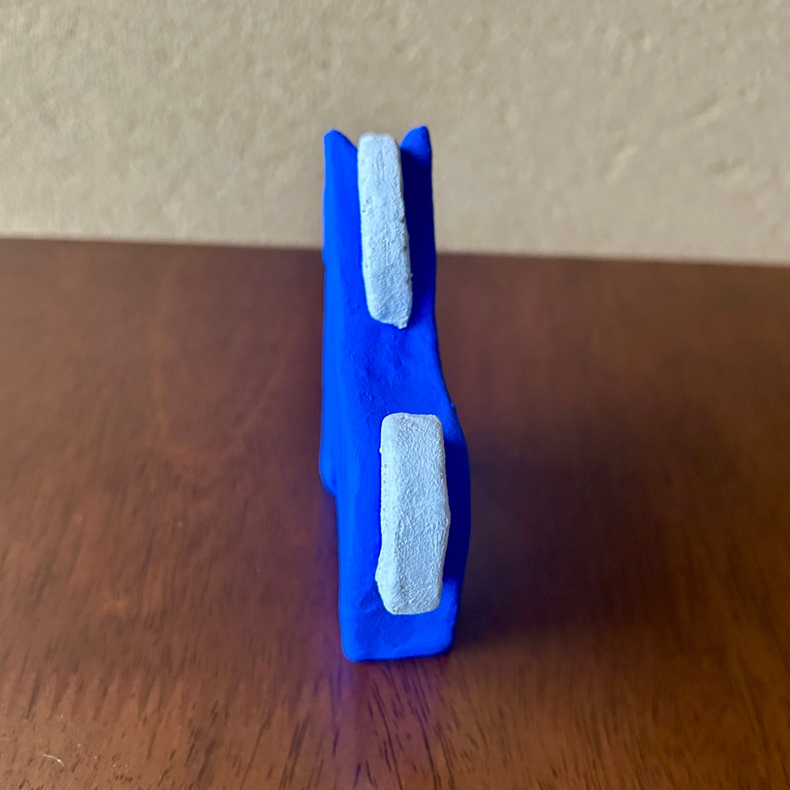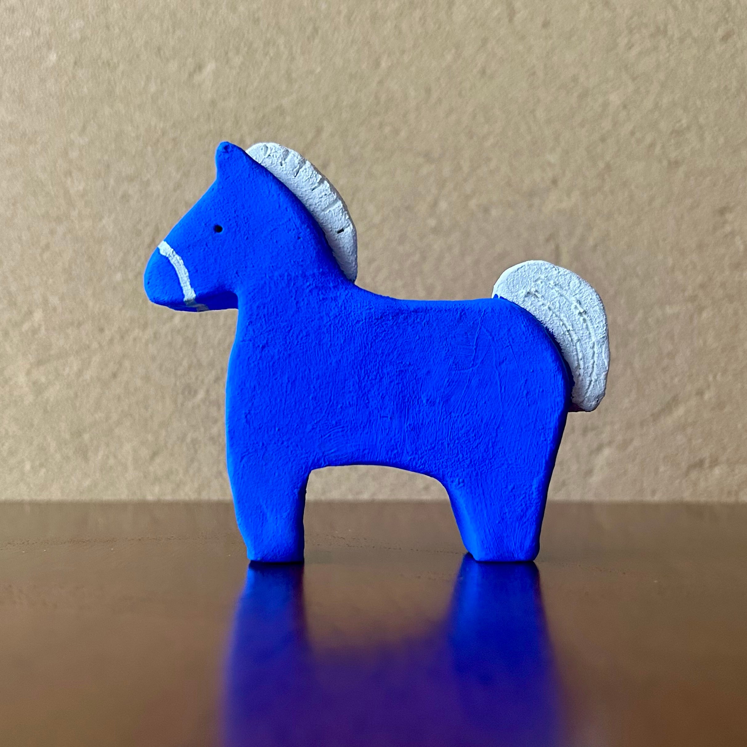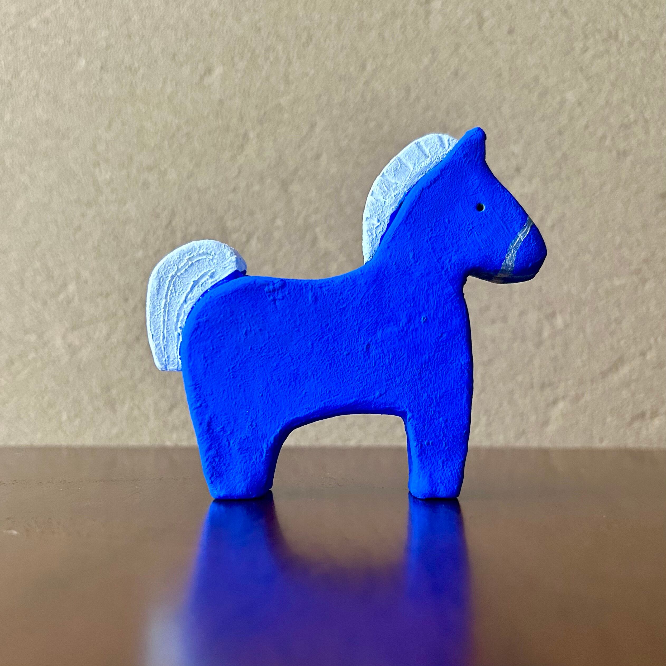 オーブン陶土を使用した、青い馬の置物です。