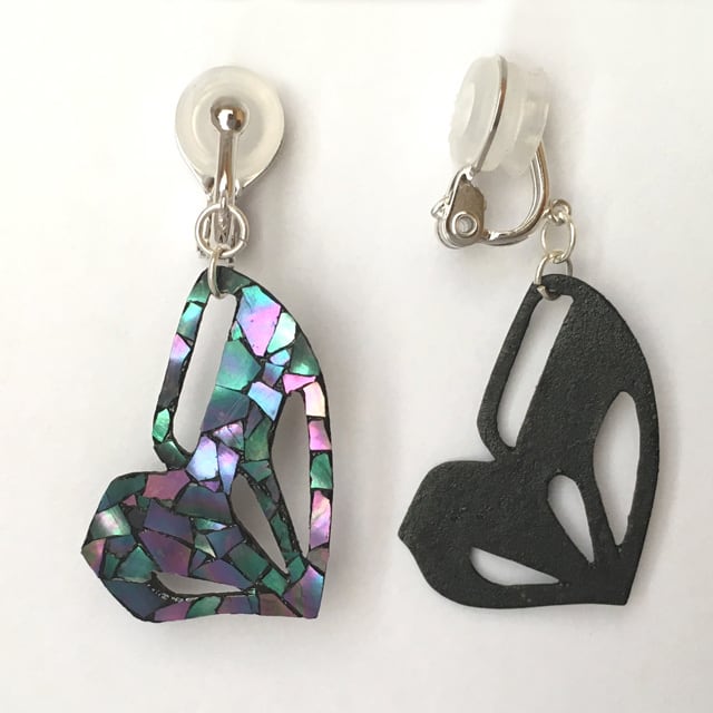 素材:漆、あわび貝、紙、シルバー925、イヤリング装着部分シルバー925ロジウムメッキ(銀)、シリコン、ステンレス