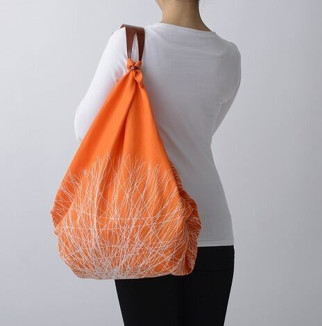 パリの工業デザイナーエージェンシー アンキデザイナーズと京都の風呂敷屋 コトノワが開発した新しい形の風呂敷持ち手です。